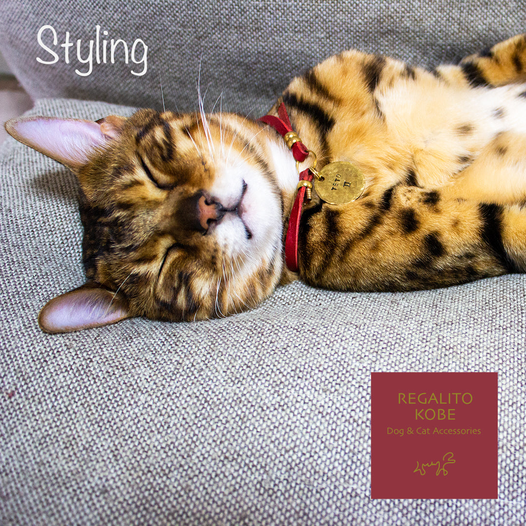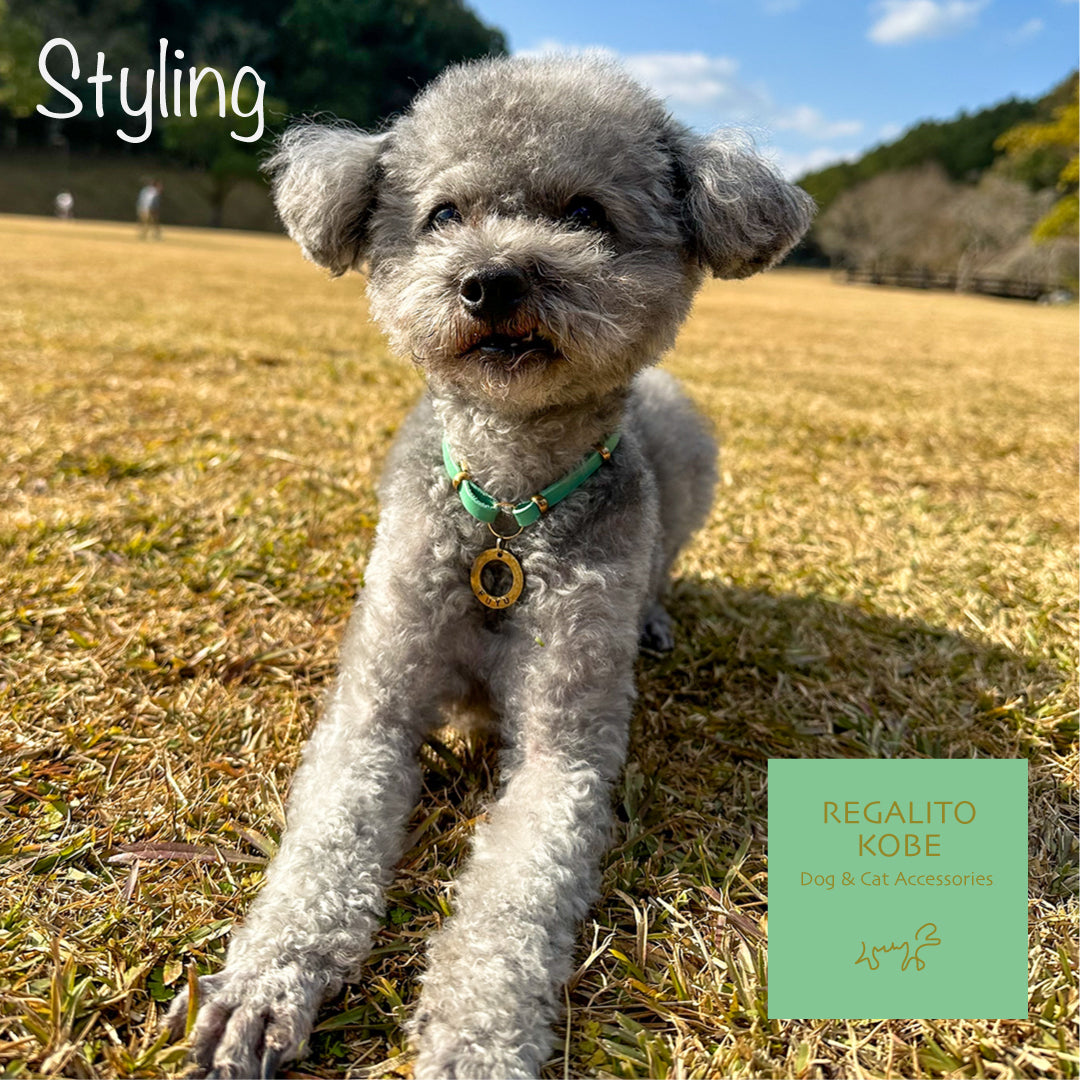 お出かけの時も、チョーカーの上から首輪やハーネスをしていただけます。